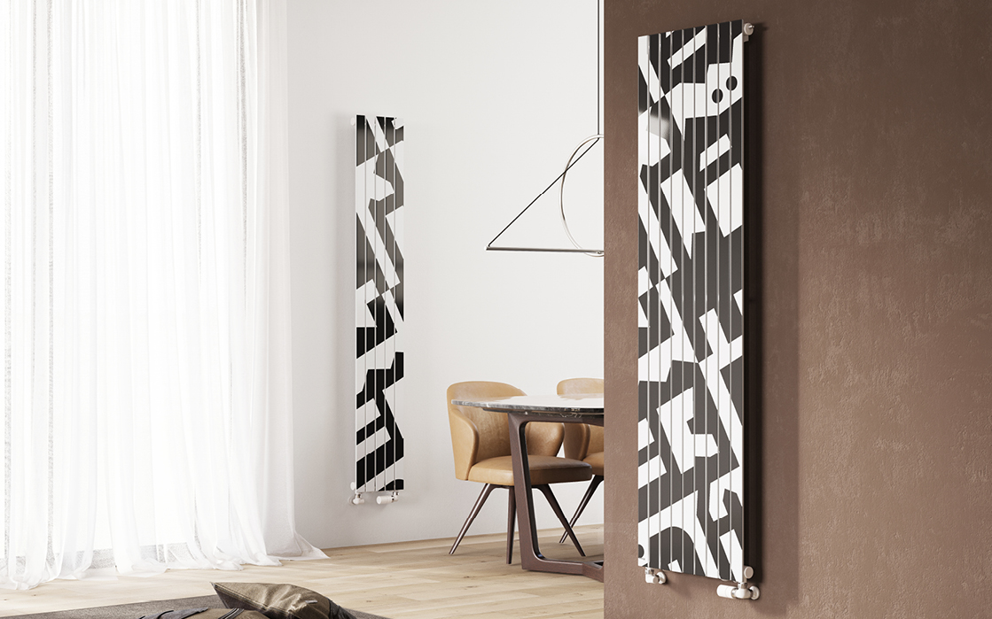 Der Heizkörper wird so zu einem Ausstellungsobjekt, einem Element, welches die Umgebung personalisiert und zu einem einzigartigen Ort macht, bereichert durch chromatische Effekte, die Sie aus den von Cordivari Design vorgeschlagenen grafischen Lösungen auswählen können, die von Künstlern, Fotografen und Designern oder aus Ihren Lieblingsbildern erstellt wurden.