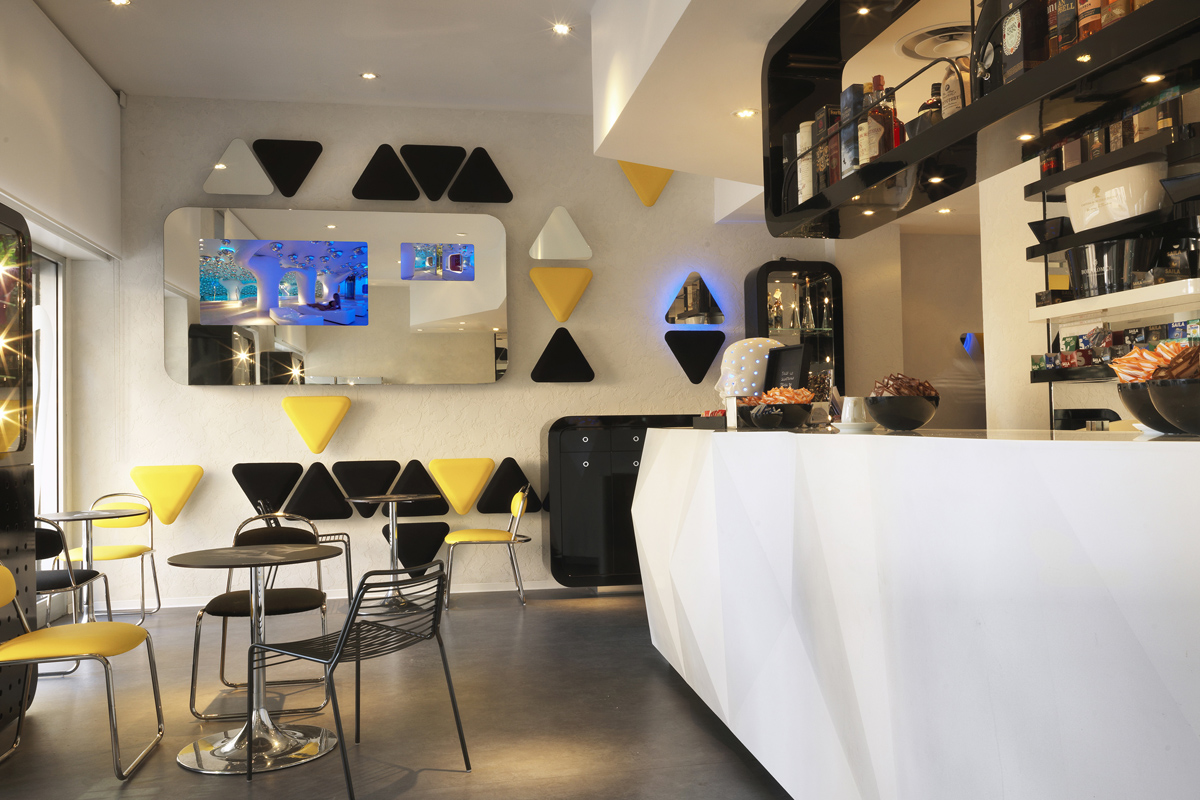 Die faszinierenden Geometrien der Einrichtung die The Bar prägen, lassen ganz besondere Atmosphären entstehen, die zu entdecken sind und den Gast willkommen heissen und Momente von Intensität und überraschender Realität schenken.