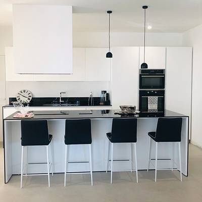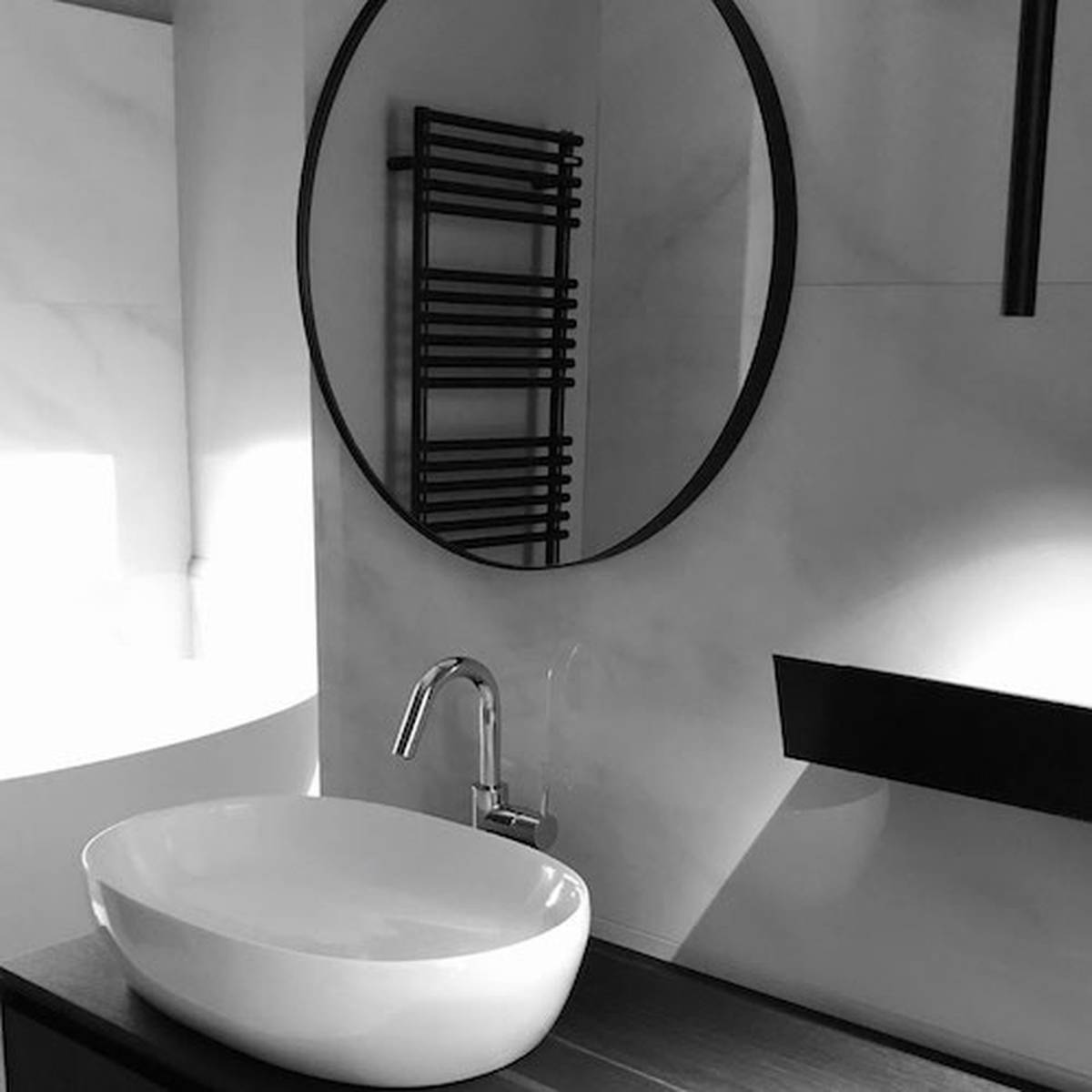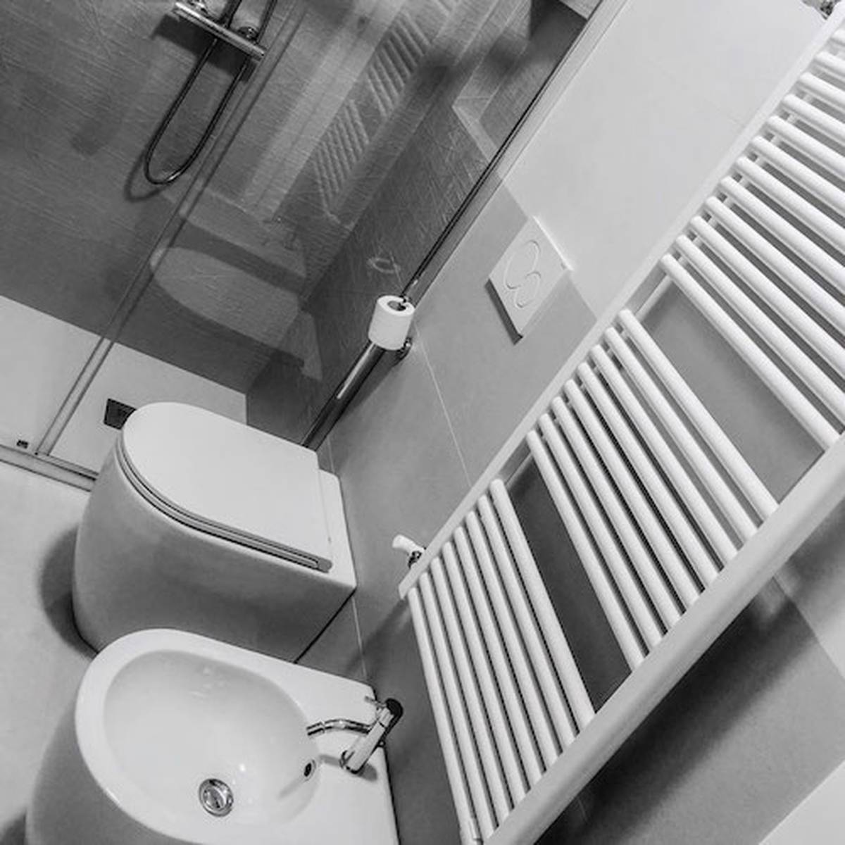 The residence is deployed over a surface of 200 square meters and has a terrace of 400 square meters. Among the design objectives there was that of a more balanced division between the common spaces and those private of the attic, with a well identified sleeping area, a spacious and bright kitchen that was desired to maintain independent and direct communication with outsiders. In the entrance and living room of the attic a beautiful glance is given by a play of circular lights and a very elegant boiserie that furnishes the environment with a discreet presence that hides a walk-in closet and a guest bathroom with the installation of a black Cordivari radiator that integrates well with all the elements; in the sleeping area there are three bedrooms and three bathrooms, all with Cordivari radiators.