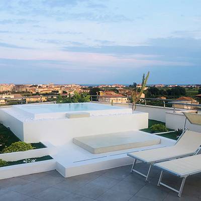 An enchanting penthouse with spectacular views towards the blue sea and green hills that mixes a warm contemporary with flashes of modern perspectives, came to life from the interior design project curated by architects Salvatore Valente and Rosaria Mauro. The house is located in a recently built elegant building, on the main street of the town.