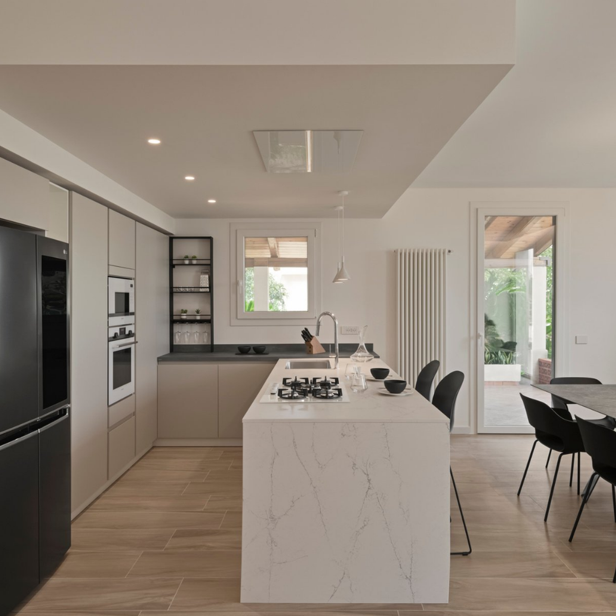 Les couleurs, les finitions et les matériaux ont été choisis pour mettre en valeur l'aspect pur, élégant, accueillant et minimal de la maison.