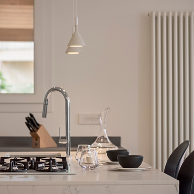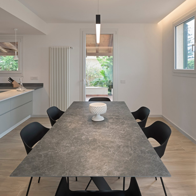 Pour le projet, les architectes ont choisi le radiateur Ardesia: minimal et linéaire, c'est le radiateur de la gamme Cordivari qui donne confort et élégance à n'importe quelle pièce.