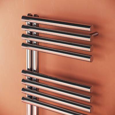 Grâce à sa conception, il peut servir de porte-serviettes. KELLY 38 est un corps chauffant réversible et offre la possibilité d'être installé selon les besoins d'utilisation et à l'ergonomie de chaque salle de bain. La connexion avec un entraxe de 50 mm donne un résultat d'installation parfaitement ordonné et compact.