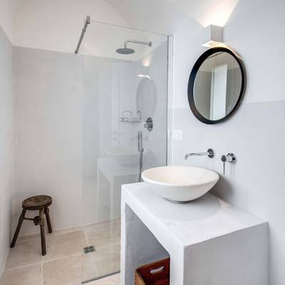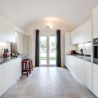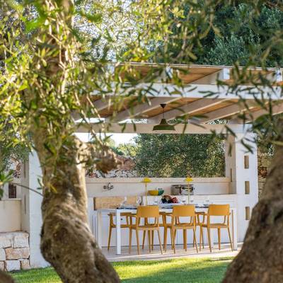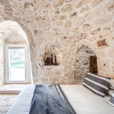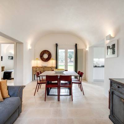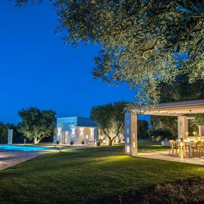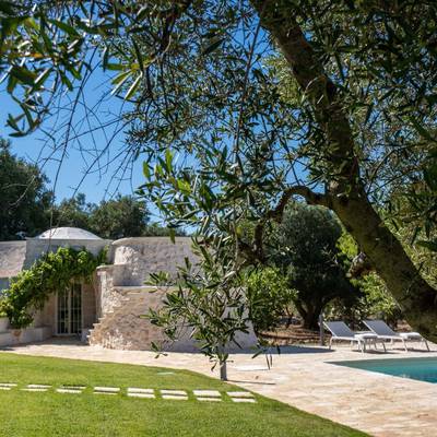 Immersa in un parco di ulivi secolari vicino Ostuni nasce Dimora di Charme, una villa di circa 120 mq composta da una lamia in pietra di nuova costruzione, che comprende una zona living con cucina, due camere e due bagni, e da una piccola suite ricavata in un antico trullo ottocentesco, che ospita una camera da letto con bagno ed una grande doccia ricavata in alcova. Più di un ettaro di giardino con due gazebo esterni dedicati al relax ed una piscina con terrazza solarium completano la tenuta.