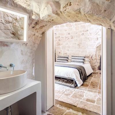 Il concept è nato pensando alle atmosfere “cosy” delle case di campagna, con un layout ricco di dettagli, improntato all’informalità tipica dell’ospitalità pugliese, ed una palette cromatica ispirata ai colori della terra. Colori neutri, come il beige della pietra di Trani usata per la pavimentazione ed il grigio chiaro della resina dei bagni, fanno da sfondo ad accenni cromatici più decisi, quali rosso mattone e giallo ginestra, usati sia per la mobilia di design che per i vecchi oggetti di recupero.